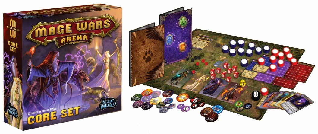 The rebranding of the Mage Wars core set as Arena, helps identify it as a game with a board in preparation for Mage Wars Academy, a forthcoming 2-player set that will function as an additional entry point for new players. Mage Wars Academy will be a �board-less� game, which offers portability and faster gameplay, as well as a lower price point. It will include more cards and strategies for collectors and existing players.